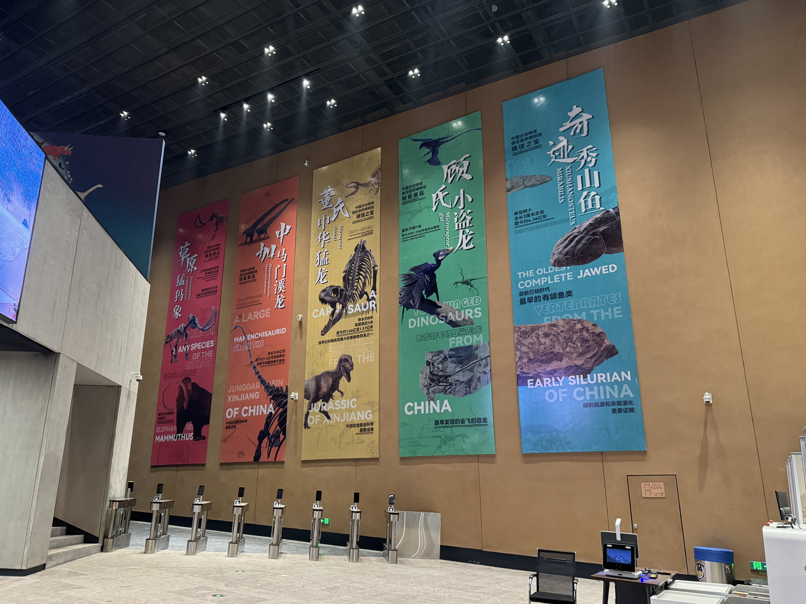 清晨七点,保定东三环的晨雾尚未散尽,我又一次站在中国古动物馆(保定自然博物馆)前面,这座“层城叠构、绿野无尽”建筑已如巨鲸般浮现在朝霞中。由上万件标本构建的时空隧道,正等待开启一场跨越5亿年的对话。入口处悬挂的巨大镇馆之宝条幅上,来自遥远时代的化石们似乎已经准备好欢迎的姿态,等待即将汹涌而来的观众们。这种古今交织的叙事方式,恰是当代自然博物馆的革新缩影。