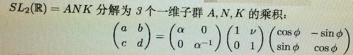 其中的矩阵A表示膨胀变换,矩阵N表示左平移作用,矩阵K是旋转变换。