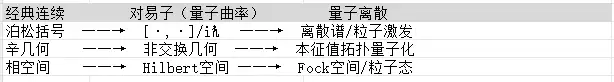 经典 / 相对论:对称是连续李群(SO(3),SU(2),U(1)),对易子是李括号,自由度无限光滑;