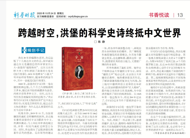 本文已经发表于《科普时报》2025-10-24 第13版 书香悦读,发表时略有删改。详情请见: