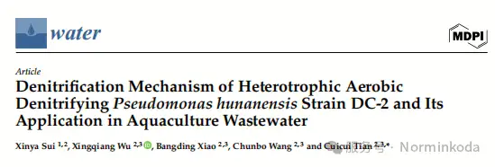 文章题目:Denitrification Mechanism of Heterotrophic Aerobic Denitrifying Pseudomonas hunanensis Strain DC-2 and Its Application in Aquaculture Wastewater