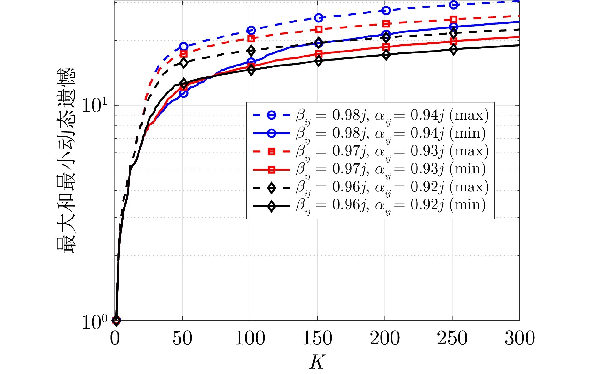 图 2 不同参数下算法1的动态遗憾($ j = 1,\;2,\; \cdots, \; 6 $)