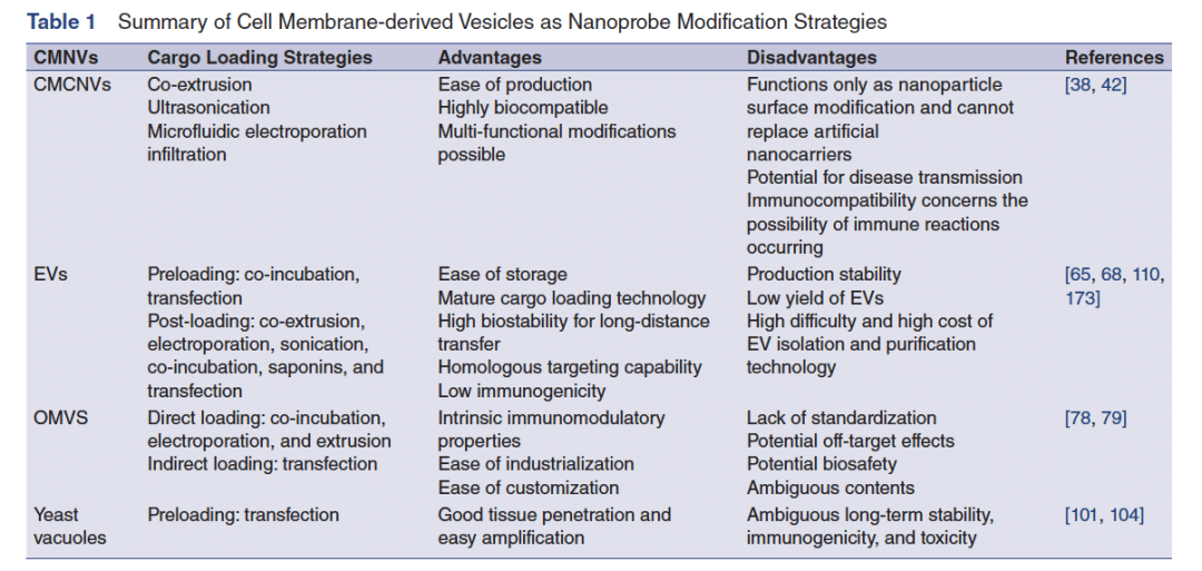 表1:细胞膜衍生囊泡作为纳米探针修饰策略的总结
