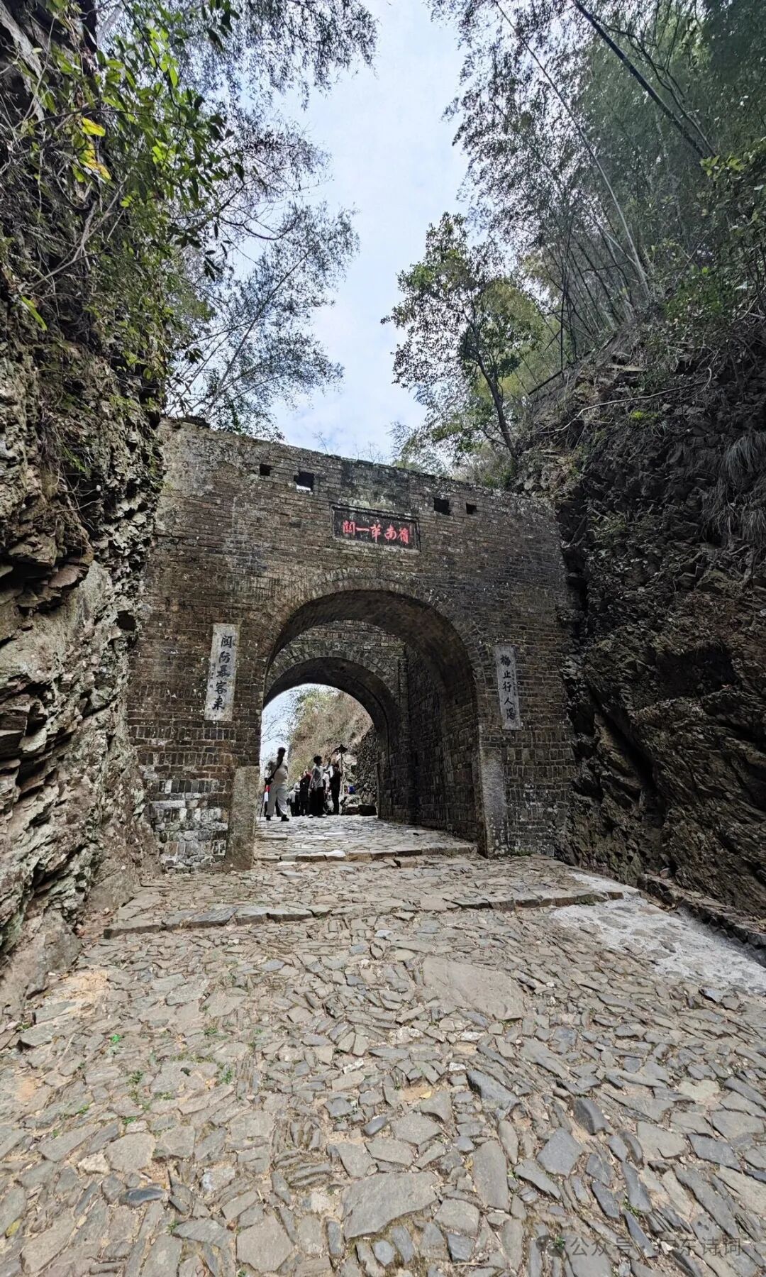 梅关古道,北起江西赣州之大余县,南至广东韶关之南雄市,长七八十里,穿越大庾岭,唐代名臣张九龄开凿于开元四年(公元七一六年)冬,是为中原一带出入岭南必经之路。岭上多梅,又称梅岭。