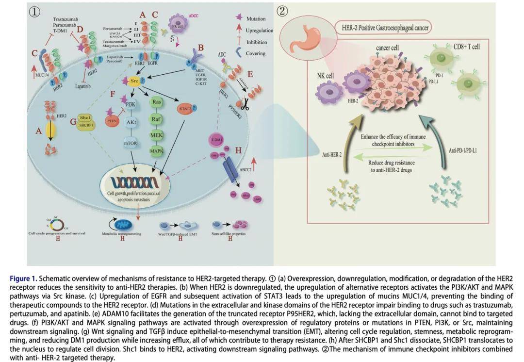 本文系统总结了HER2阳性GC/GEJC中HER2耐药的分子机制,包括受体水平、信号通路、免疫微环境及表观遗传等多个层面,为理解耐药现象提供了全面的理论框架;