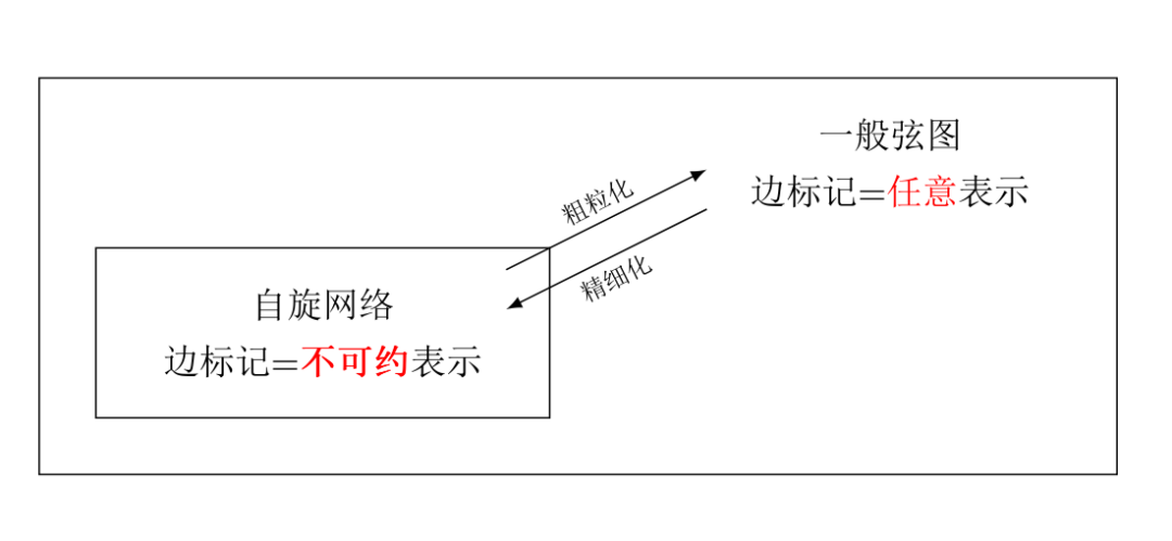 自旋网络在数学物理中广泛出现, 最早彭罗斯引进这个概念, 作为量子几何的组合模型, 后来洛韦利和斯莫林在圈量子引力中重新发现了这个结构. 在拓扑场论, 凝聚态物理中, 自旋网络都是自然出现的. 理所当然, 也是众所周知的, 自旋网络都是群的表示范畴中的弦图(string diagram), 但是一个几乎没有人强调的事实是, 并非所有的弦图都是自旋网络. 自旋网络是表示范畴中的非常特殊的弦图, 其特殊性在于其边的标记对象都是不可约表示. 一般的弦图对其边的标记对象没有任何限制. 一个自然的问题就是, 那些不是自旋网络的弦图的物理意义是什么? 为什么只有自旋网络这样特殊的弦图出现在物理理论之中? 回答这个问题的关键就是粗粒化. 事实上, 每一个自旋网络经过粗粒化之后一般都不再是自旋网络, 而是可以表示为一系列自旋网络的线性叠加的一般弦图; 反过来, 每一个一般弦图在表示范畴中都可以精细化为一系列自旋网络的线性叠加.