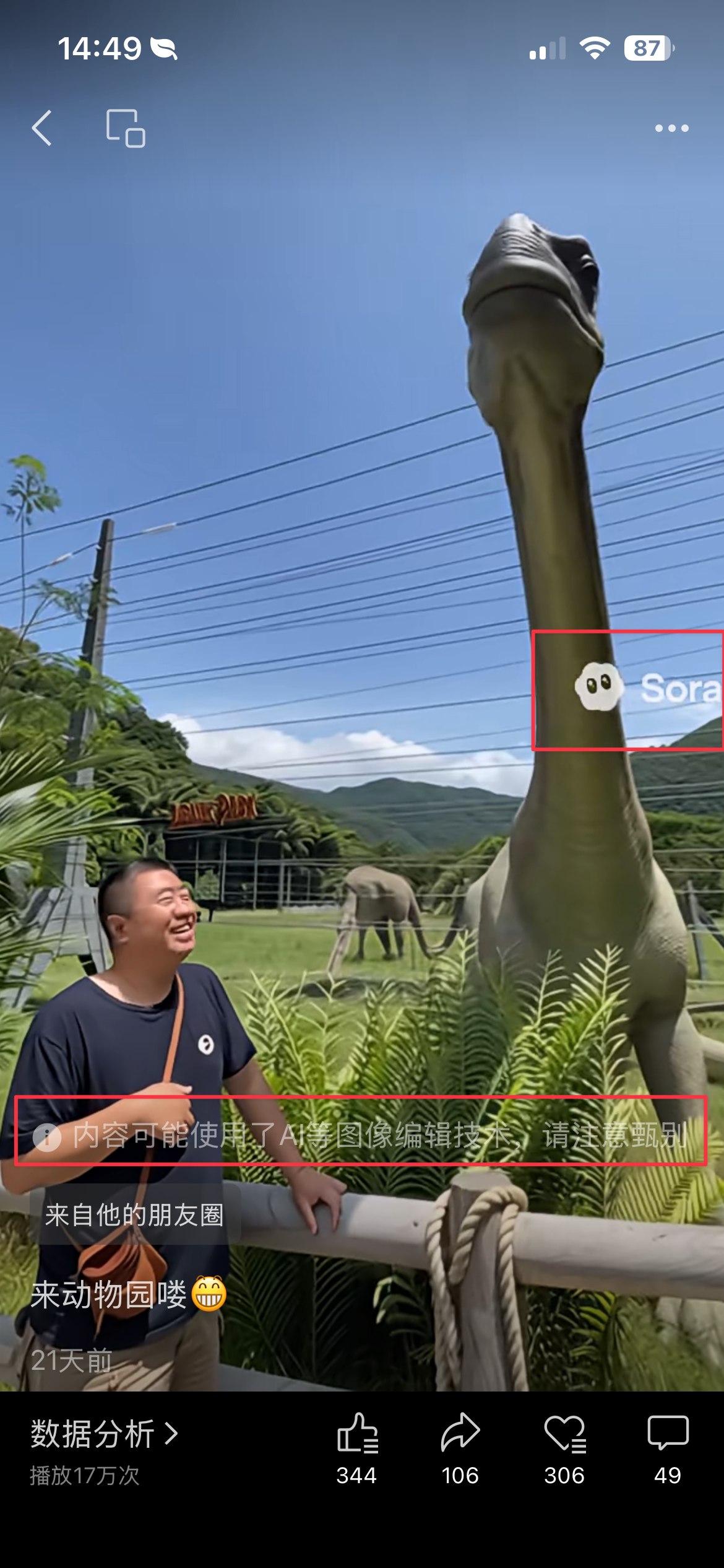 我在今年国庆假期玩儿 Sora 2,生成的视频明明有显著的 AI 生成标识。