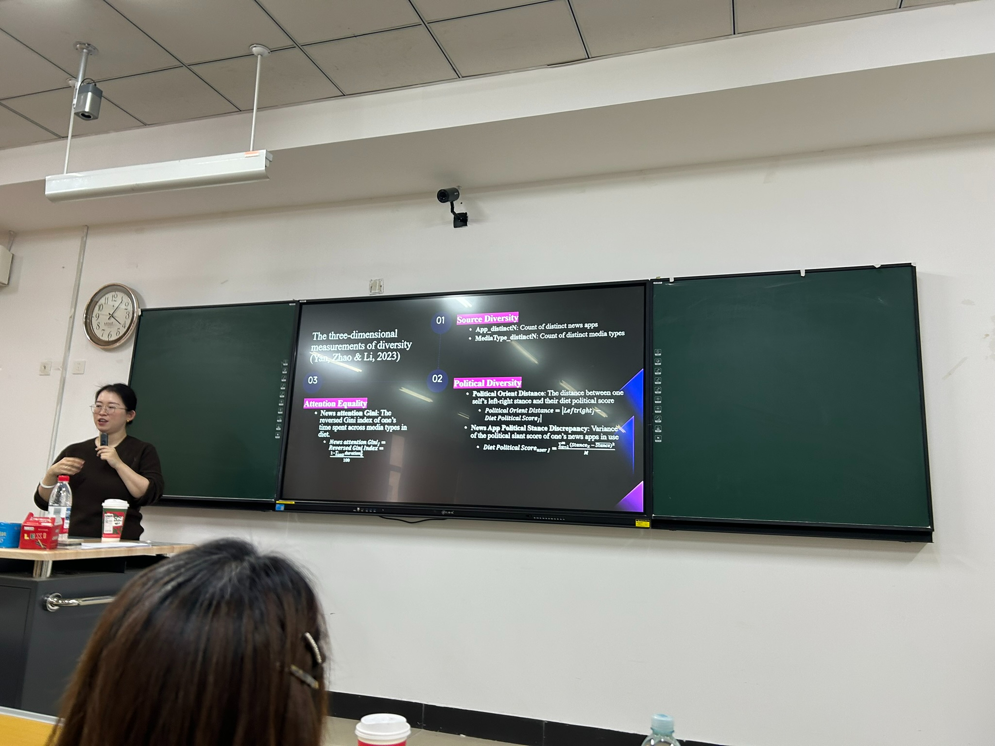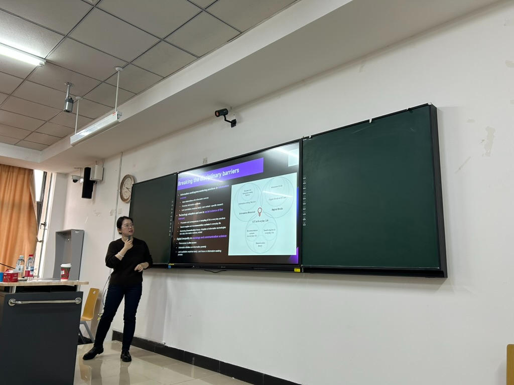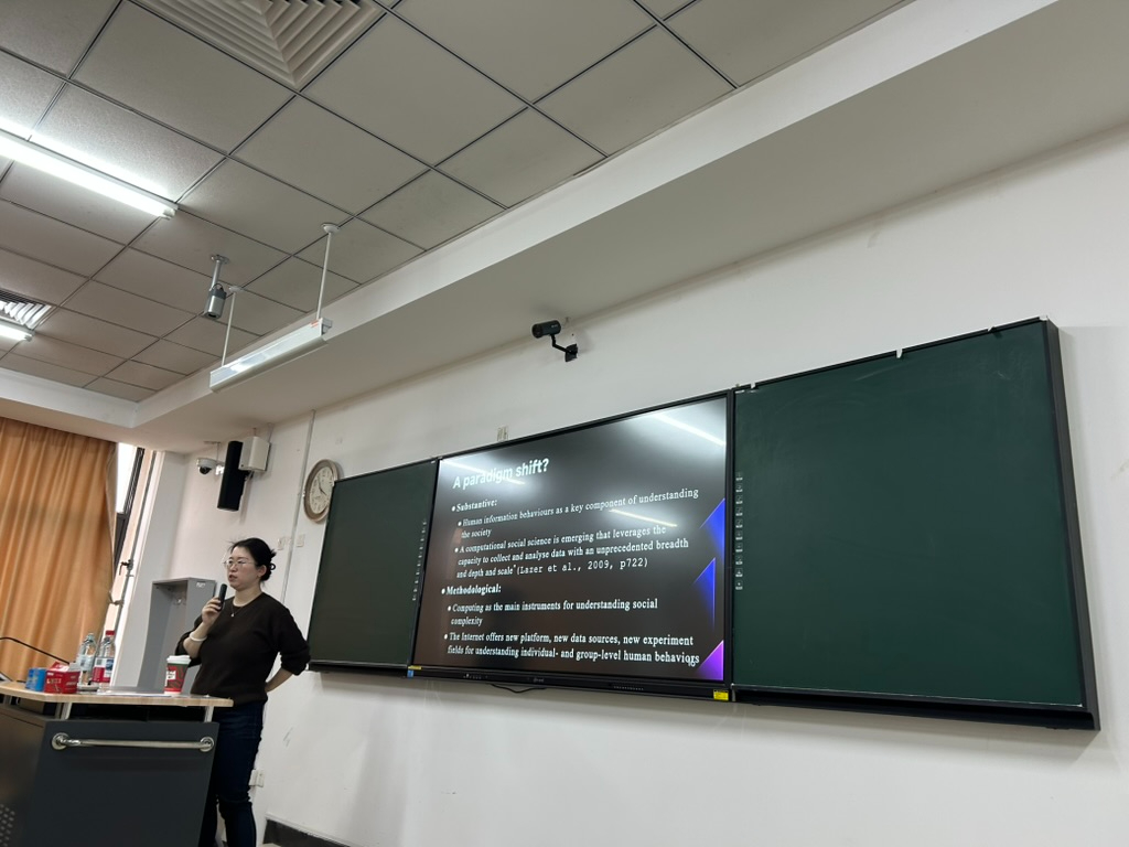 2025 年 11 月 6 日,应刘冰院长的邀请,北京大学闫蒲老师来到天津师范大学,给管理学院 100 多名师生做了题为《算法与田野:混合研究视角下的信息行为研究》的讲座。