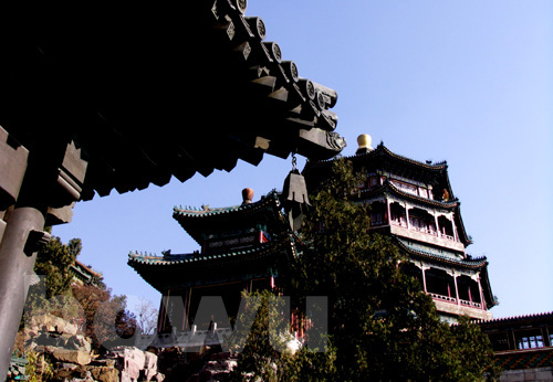 你现在看到的是北京的金殿(上图),它位于北京西郊,在颐和园万寿山南坡的佛香阁西侧,该建筑称为“宝云阁”,北京人俗称“铜亭子”,高七米五,重两百多吨。这是座仿木结构的重檐歇山顶式建筑,四面装有菱花隔扇窗,以铜合金为原料,在铸造过程中采用了我国传统的“拨蜡法”和“掰沙法”工艺。它外观所呈现出一种古朴的蟹青色,在露天中历经两百多年不锈不变,那是一种独特的表面处理技术所表现出来的。它是我国有色金属锻冶与处理技术的标本,具有极高的科学价值。其下的汉白玉须弥座玉料洁白,应是出自房山县的大石窝村。以前,殿内有座铜八仙桌,也许是原先该殿供佛用的供桌,那桌子七十年代还有,小伙子们最爱到那里比力气,比赛谁能搬动它,八十年代初到此游玩儿时就看不到了,现在金殿长年大门紧锁,也不知道那桌子回来了没有。我原先去的时候,不仅铜桌子是不见的,就连金殿四维的几扇窗户也是不见的,那是在庚子年间(1900年)被八国联军掠走的。其实,宝云阁曾遭过两回劫,一次是1860年的英法联军之劫,宝云阁是联军火烧圆明园、清漪园(颐和园的前身)后幸存的少数建筑物之一,但其内部陈设已经被那些不赦的禽兽们劫掠一空了。此后八国的破坏应属拔橛之作。
