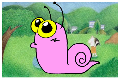 瞧!这张卡通就画错了,蜗牛既然是柄眼目,它的眼就应该长在其柄(触角)上才对嘛。