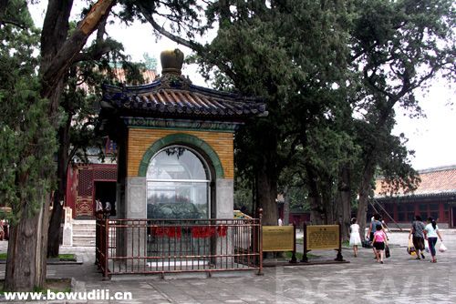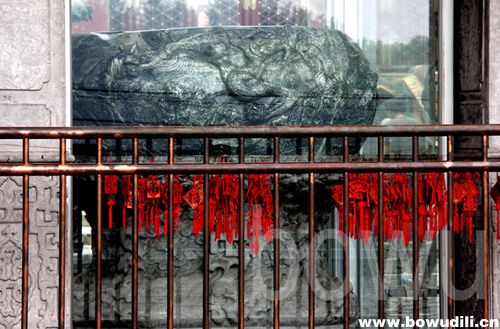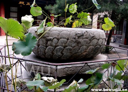 乾隆爷把大玉海是擦了又擦,洗了又洗,又找“揍笨处”的能工巧匠把陈年磕碰的老伤给拾掇得跟新的似的,还刻意在北海团城上盖了一座精致的玉瓮亭。话分两头儿,那捡漏儿官员在庙里光顾着捡大玉海了,他忘了一件儿跟玉瓮一样重要的东西——大玉海的原配底座儿。乾隆爷还以为这瓮当初就没个底座儿呢,便找来上好的大理石给精雕细刻了一个。这庙里的原配底座儿呢?老道一看腌咸菜的宝贝儿不是叫人给搬走了吗,心里也没着没落的,便叫人照着玉瓮的样子用白石头仿了一个“渎山大石海”放在当年那玉海座儿上,就这么一直放到了解放。解放后,真武庙成了大杂院儿,文物部门为了保护文物,连瓮带座儿一块堆儿就给搬到了法源寺,从此大石海与玉海座儿就一直在那里保存着,现在它们就陈列在毘卢殿前的院落中,有兴趣的朋友,得空儿可到广安门大街路南教子胡同的法源寺里去感怀一番。(段煦 文/摄影 -博物地理www.bowudili.cn-)