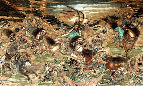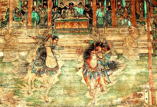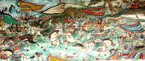 英雄和他们的精神是人所需要的东西。无论是在宫廷,还是在民间,英雄题材的刀马人物画总是为人所深深喜爱的。这从长廊的彩绘中可略见一斑。