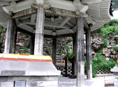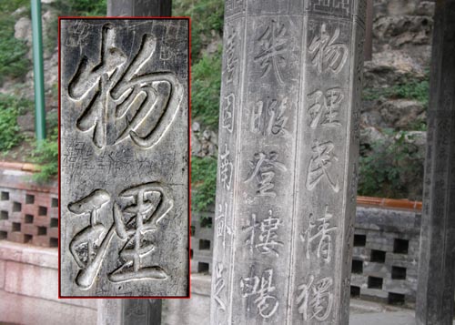 北海中的琼岛,从金代起就开始经营,但目前上面的建筑绝大多数都是清代的。1753年的时候,乾隆皇帝在其山背修建了一座玲珑别致的八角攒尖亭,名曰“烟云尽态”亭,顶为砖雕,额枋和亭柱均采用优质的汉白玉石制成。最为奇妙的是,不仅亭子是八角的,连亭柱也是八角的,每根八角的亭柱都有八个立面,这些立面上共刻有二十六首乾隆的御制诗。某年一个夏日,独自踱到亭中午休,凉风袭袭,清爽备至,惺松睁眼,细读诗句,看到“物理民情”(即事理风俗之意)一句时,忽然觉得,这俩字如果作为题签送给《物理》杂志,或某位仁兄撰写的《物理》课本儿倒是一件美事儿。你看,乾隆爷作为历史名人,大国元首,写这一手优美的馆阁体,既雍容富贵,又不失刚劲;既够年头儿,又没人找你要润笔或版权费,这样的美事儿上哪儿找去!(段煦 文/摄影)
