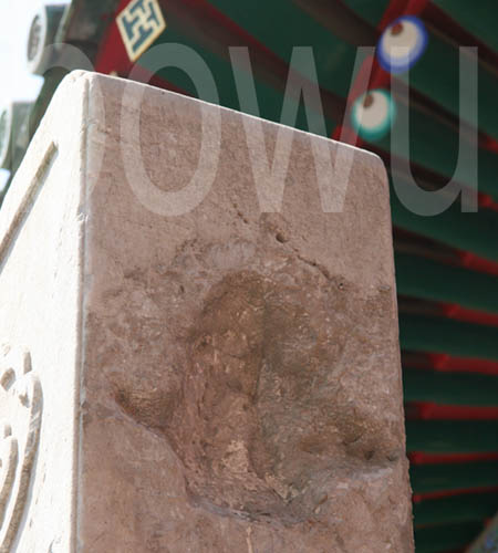 在它曾一百五十九中大门的时候,我记得大门口并没有这两块下马石。今天的下马石上有断裂后修复的明显痕迹,因此很可能是修整后重新复位的“库存文物”。在我很小很小的时候,模模糊糊地记得一个很老很老的老奶奶曾跟我说:平则门(阜成门的旧称)内有座帝王庙,庙门口一左一右竖着两块下马石碑,就在靠东边拉的下马石碑里藏着一个宝石花篮儿,这可是无价的宝物,这宝物一般人是看不出来的,就是连修帝王庙那会儿的皇帝都不知道,不然怎么会用它(指石材)做了石碑呢?也不知道那石碑在那里立了有多久,有一天,终于让一个懂行的人给看出了来了,就趁着夜色把那宝石花篮儿凿出来偷走了。此后,那石碑上就留下了一个花篮儿形的石窝儿。你要不信,下回路过帝王庙的时候留心看看,那石窝儿一定还在。