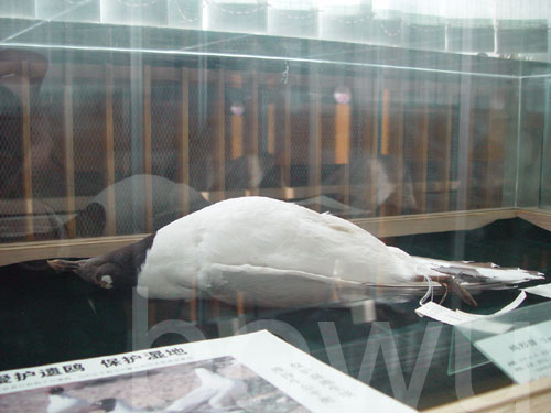这只戴黑“头巾”,白“眼镜”,穿淡淡石青“衣服”的鸟叫遗鸥。第一个遗鸥标本是1929年在内蒙古弱水河边得到的,虽然发现者曾预感到这是一个新的鸟类物种,但动物学家们迟迟不敢对它作出定论。长期以来,人们始终围绕它是棕头鸥与其它鸥类的杂交产物还是一个新的物种争论不休。直到20世纪70年代,苏联的鸟类学家根据在哈萨克斯坦境内的繁殖鸟标本,明确地提出:它是一个独立的物种。它的名字--遗鸥,即遗漏之鸥,失落之鸟,流露出人们对其相见恨晚之意。