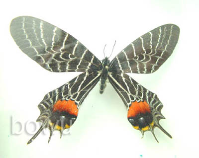 三尾褐凤蝶虽名为凤蝶,外形也与凤蝶十分相似,但它却隶属于绢蝶科。它生活于海拔2000米以上的山区。国内分布于云南、四川、陕西、西藏,是著名的珍稀蝶类,属国家二级重点保护动物。