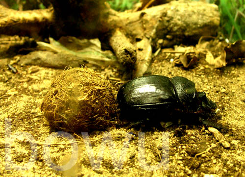 半个多世纪前,每逢夏秋两季节,在北京街头就有卖一种叫“黑骡子拉车”的小孩儿玩具。所谓的“车”是木棍、花纸粘成的小车,拉车的“骡子”则是种头上长角、怪模怪样的大黑活甲虫,把纸车粘在这虫身上,它会慢悠悠地拉上一阵,引得儿童们的一阵欢笑。这样的玩具,爱干净的小孩儿是不玩儿的,因为拉车的虫子就是滚粪球的屎壳郎。当你漫步在乡间田野时,常常会见到屎壳郎夫妻在地上滚粪球儿,它们一个后面推,一个前面拉,齐心协力,把粪球儿滚回巢穴中,雌虫就将卵产在粪球里,这样,小屎壳郎们一孵出来就有足够的“粮食”吃了。它们是大自然的清洁工,是人类的好朋友。