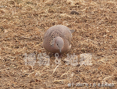 北京城里常见的是这种珠颈斑鸠,你看,他颈上的串串珠链多好看!