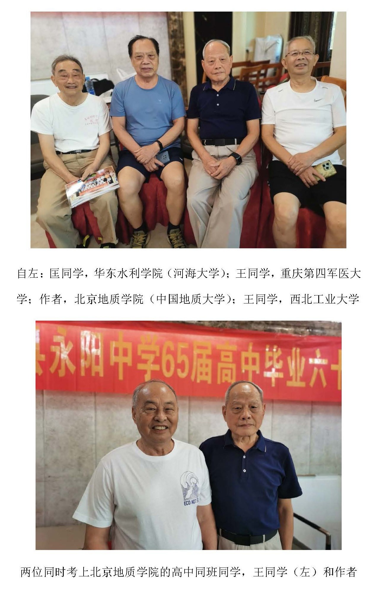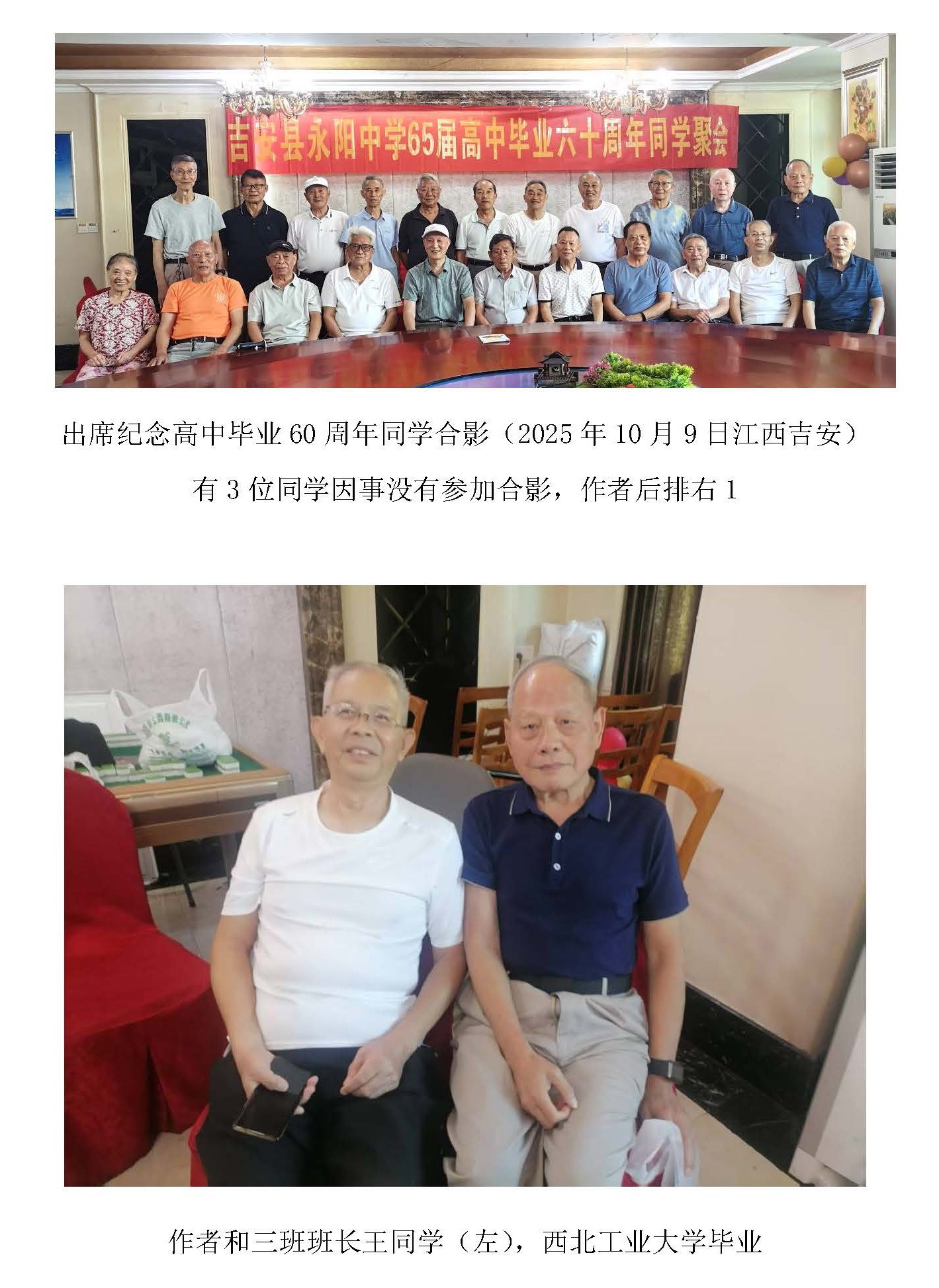 今年是我高中毕业暨大学入学60周年。去年10月9-12日我们在武汉中国地质大学母校(1975年从北京迁至武汉办学)提前一年举行了大学入学60周年纪念活动。活动内容丰富多彩,我特地撰文《夕阳无限好,晚霞很美丽——庆祝中国地质大学地球物理勘探系65级入学60周年活动记实,2024年10月21日科学网》做了报道。今年上半年,家住老家吉安的以彭同学为主的几个长期热心服务同学策划,提出在国庆长假结束后的9号在老家吉安市举办“庆祝永阳中学1965届高中毕业60周年”活动,希望全年级各位老同学们依据自己的健康状况及家里情况自行决定是否出席,并欢迎携家人参加,他们的建议得到同学们的积极响应。我及时表达了热烈响应的意愿,并明确表示,如果届时没有特别事情,我和夫人(永阳中学1968届高中毕业)一定按时出席这次意义深远的聚会。我们班家住长沙的王同学,也是我们年级唯一的一个“厅官”同样积极响应,他在电话中表示如果身体状况许可一定参加,并表示同学聚会经费他来承担。王同学是一个有情有义的人,没有一点官架子,我在相关文章中介绍过他的励志经历。我曾经多次因公出差长沙,得到他们全家的热情招待,我很感动。早年王同学有一次陪同湖南省委一位领导出差路径吉安短暂停留,他特地向领导请假,邀请在吉安工作同学相聚,了却同学之间多年的思念之情。这次王同学由于突发身体不适未能前来参加聚会,我们和他都深感遗憾,祝他早日康复。
