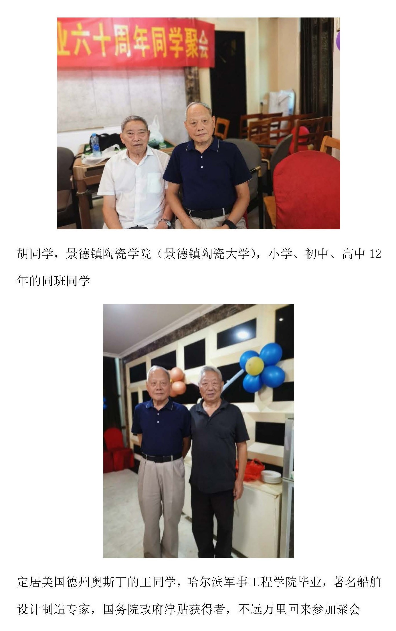 聚会活动在愉快的往事回忆中度过,大家畅谈快乐有趣的高中学习生活故事和晚年生活感悟。在吉安市人大专委会领导岗位上退休的匡同学依然兴致勃勃地谈起高中一年级我父亲给我买的一双时髦皮鞋的往事,这双皮鞋羡煞他也!因为,当年大多数同学一般都是穿家里母亲做的布鞋或廉价的球鞋。当年我父亲尚未辞职回家,他是一名公社干部,每月有38月工资。显然,这是父亲省吃俭用给我买过的迄今为止最奢华的一双皮鞋,让匡同学记了60多年。据此,匡同学感叹地说,当年我们只有好好读书,才能以后穿得起皮鞋,否则回家种地就只能穿布鞋或草鞋了。南开大学毕业的刘同学和我之间有点陈年旧事。文化大革命中他从天津骑一辆破旧自行车来我所在的北京地质学院玩,我乘机学习骑自行车,不料将这辆本就“铃铛不响,其它都响”的自行车弄坏了,他告诉我,回去后因为此事受到有关领导严厉批评,真是有点对不住他了。刘同学还告诉大家,今年他因肠梗阻动过三次大手术,似有劫后余生之感。为此,他大发感慨,激动地对大家说,“经历这三次大手术,相当于与死神过招多次,我现在什么事情都看开了。”他以亲身经历给我们宣传心态对人们保持身心健康的重要意义。