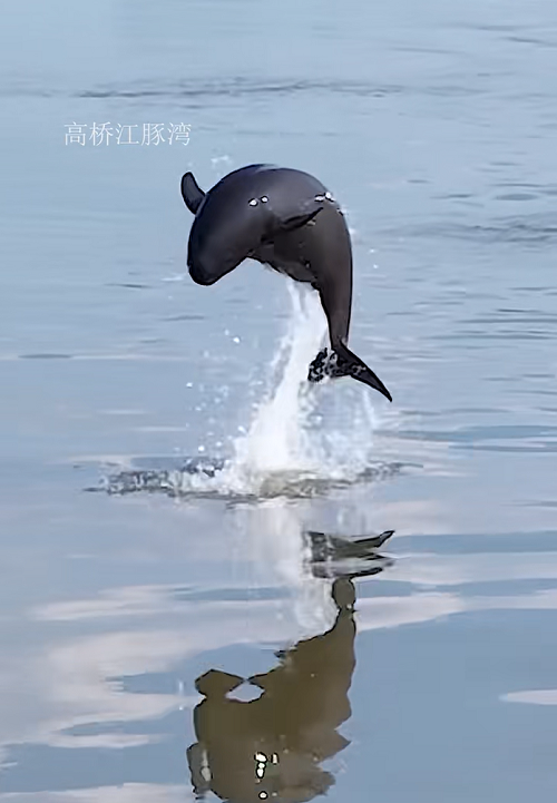 镇江高桥江豚湾江豚高高跃起,民国十六年(拍摄者网名)拍摄视频之截图