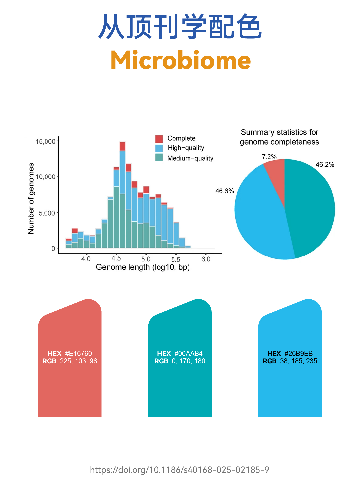 本期配色来源:热度较高(以LetPub网站查看数计)的OA期刊——最新分区为生物学1区Top的OA期刊、最新影响因子12.7的Microbiome(ISSN:2049-2618)