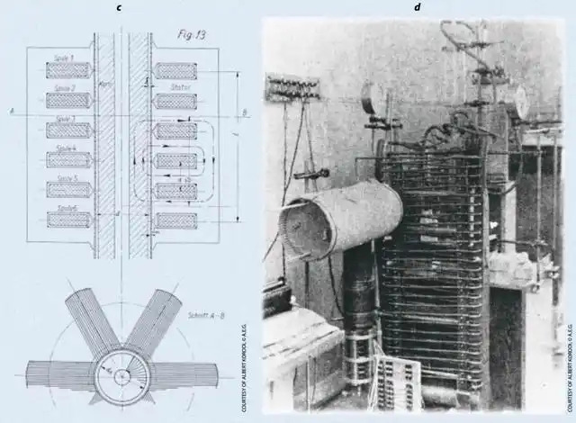 图4 爱因斯坦与西拉德设计的电磁式压缩机原理图(左)及实物图(右)