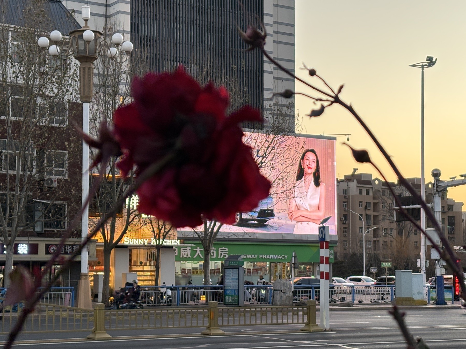 独举残红向夕阳。